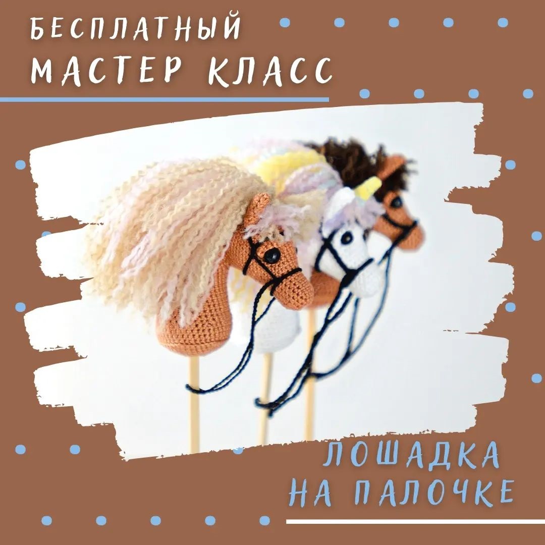 PDF Лошадка на палочке крючком. FREE crochet pattern; Аmigurumi animal patterns. Амигуруми схемы и описания на русском. Вязаные игрушки и поделки своими руками #amimore - лошадь, лошадка на палочке для куклы, конь.