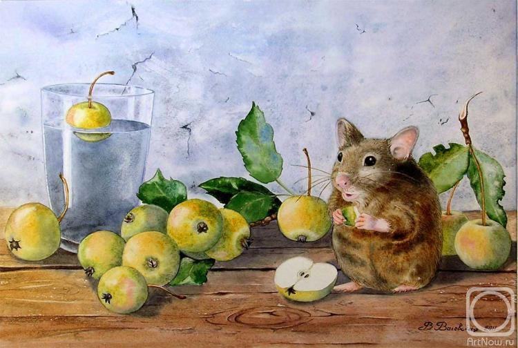 «Райские яблочки... или нахомячился» картина Валевской Валентины (бумага, акварель) — купить на ArtNow.ru