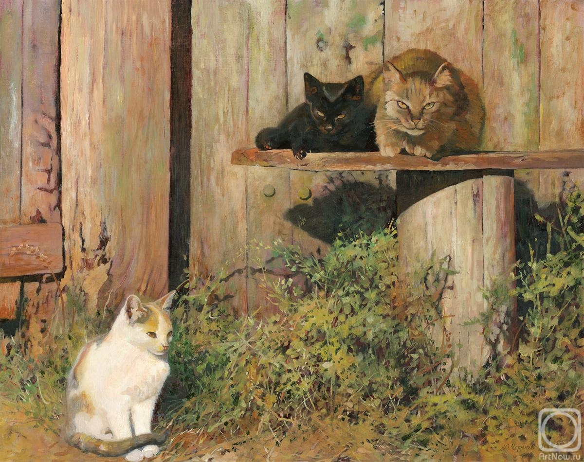 «Два кота и кошечка» картина Чернова Дениса маслом на холсте — купить на ArtNow.ru