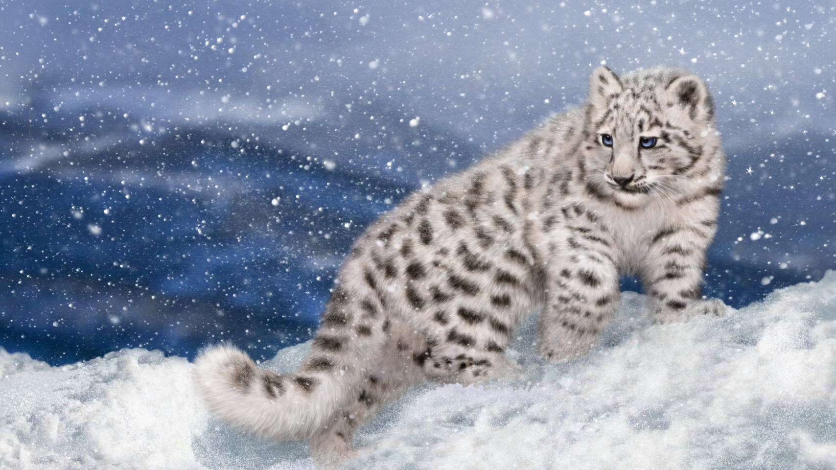 Скачать обои зима, снег, рендеринг, ирбис, снежный барс, котёнок, раздел рендеринг в разрешении 1708x960