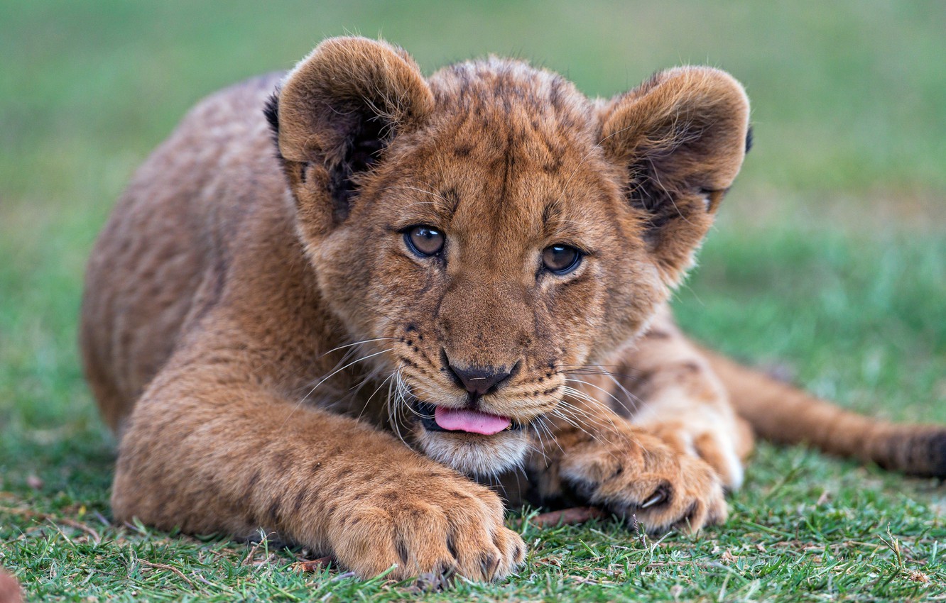 Обои трава, малыш, лежит, мордашка, детеныш, дикая кошка, львенок, львёнок картинки на рабочий стол, раздел кошки - скачать
