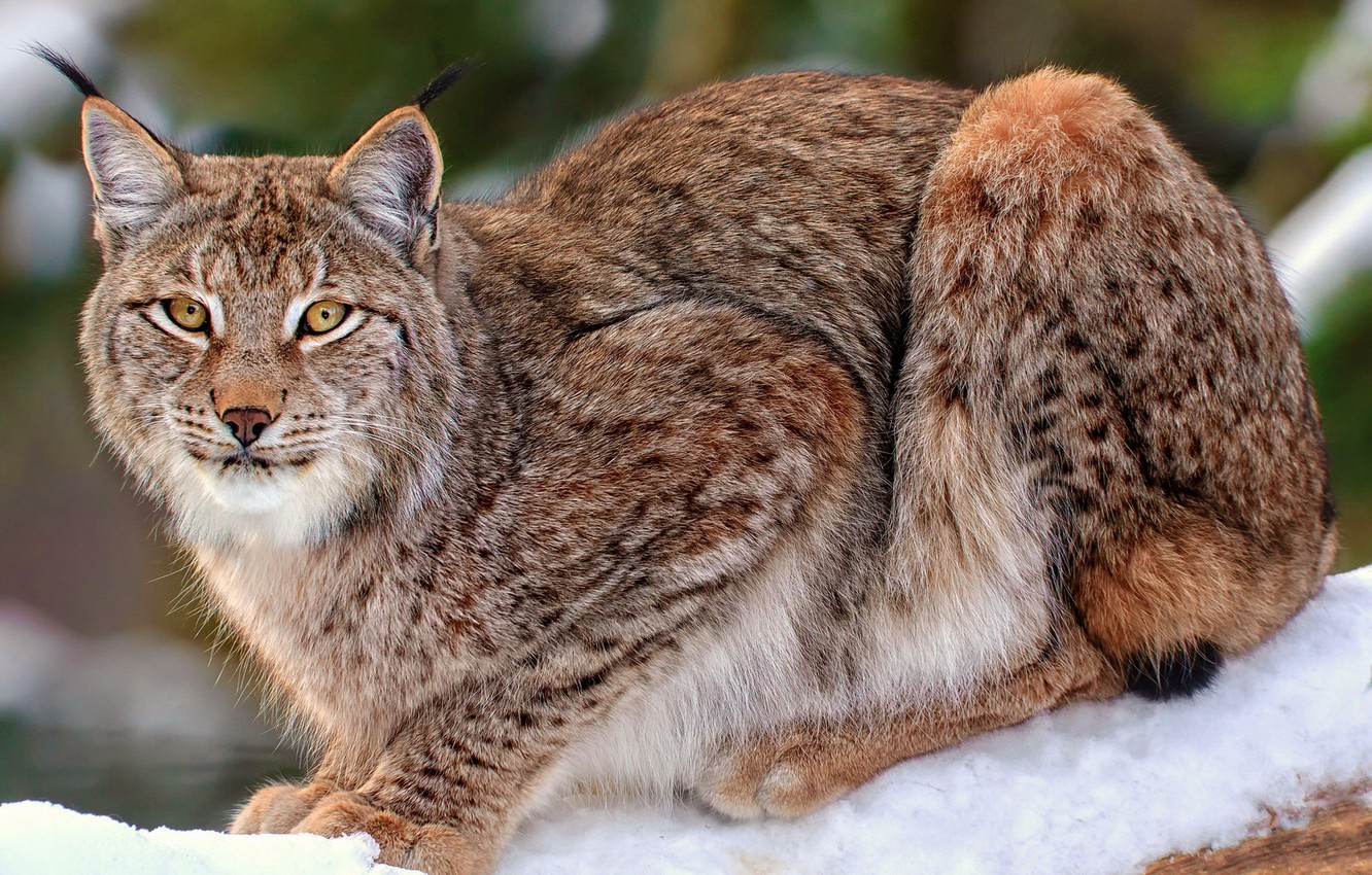 Обои взгляд, снег, дерево, отдых, рысь картинки на рабочий стол, раздел кошки - скачать