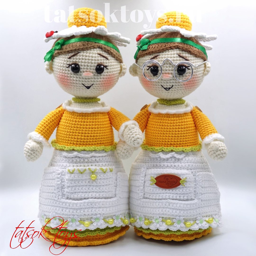 PDF Куколка-помощница Ромашка крючком. FREE crochet pattern; Аmigurumi doll patterns. Амигуруми схемы и описания на русском. Вязаные игрушки и поделки своими руками #amimore - кукла в фартуке, куколка, девочка.