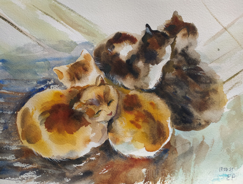 Картина Санаторские кошки. Размеры: 40x30, Год: 2021, Цена: 3600 рублей Художник Рипа Елена Моисеевна