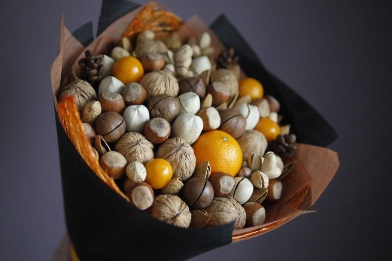 Букеты из орехов (79 фото) - пошаговые инструкции создания букетов для мужчин и женщин