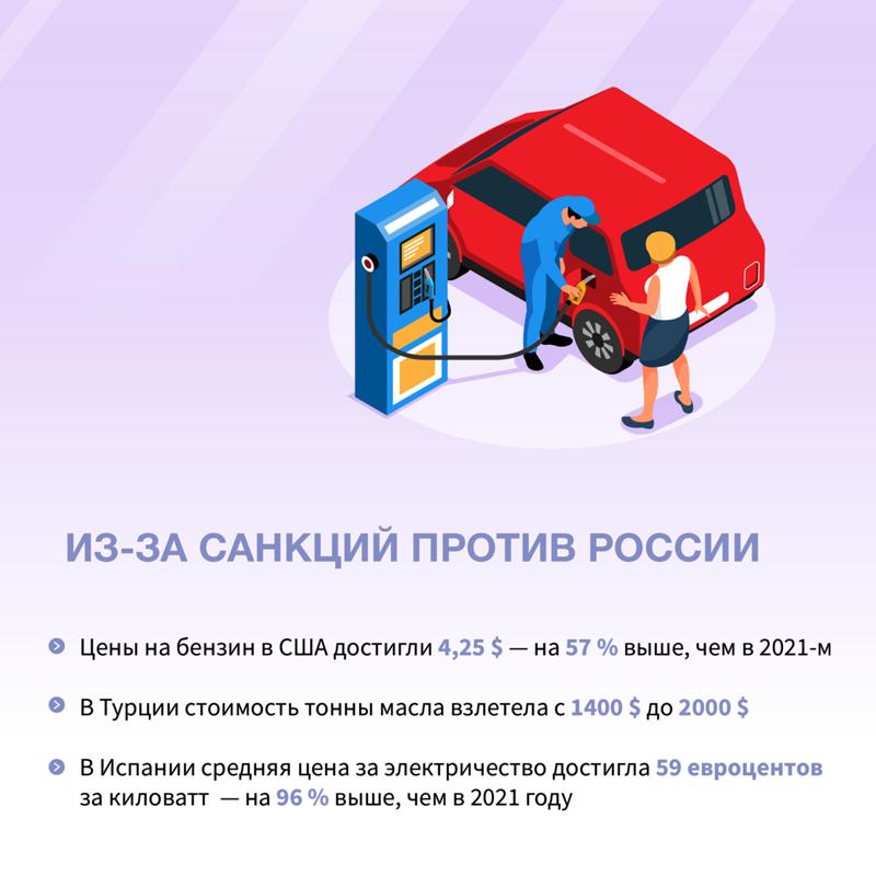 США. Во вторник цены на бензин в США достигли исторического максимума, превысив 4,17 доллара (536 рублей) за галлон (3,785 литра). Как заявил Байден журналистам с момента начала спецоперации России на Украине цена бензина выросла на 75 центов за галлон. Турция. По прогнозам экспертов, сегодняшних запасов масла Турции может хватить всего на 1-1,5 месяца. Между тем, сейчас в Азовском море стоят порядка 16 турецких кораблей с грузами, которым не дают пройти из-за ситуации на Украине.