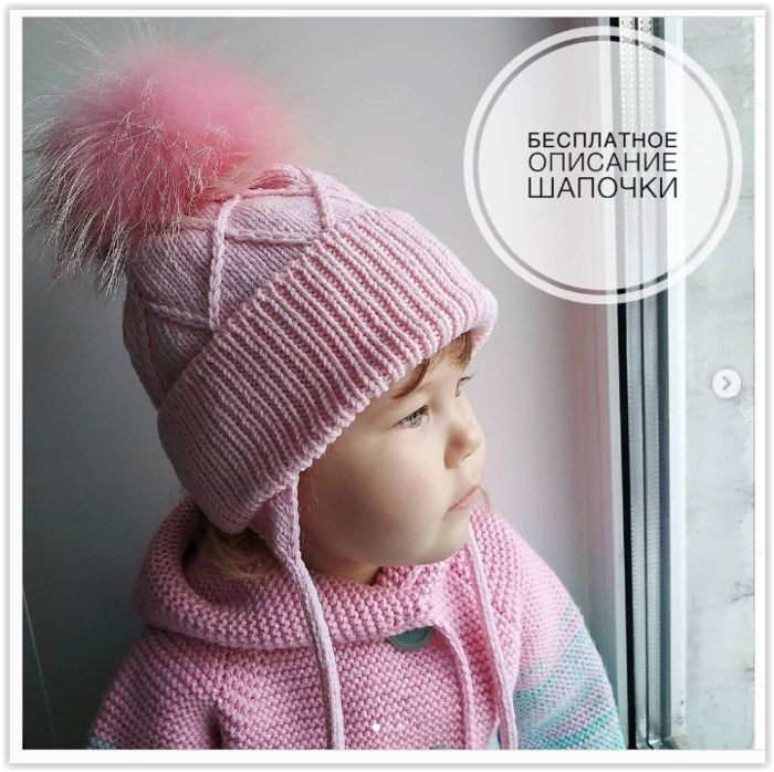 Модная детская шапочка с бесплатным описанием вязания спицами