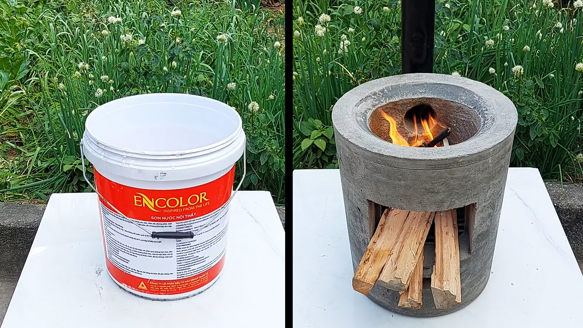 Как сделать бездымную печь из цемента и пары пластиковых вёдер Для готовки на улице можно сделать небольшую дровяную печь из бетона. Она компактная, экономичная и очень удобная. При этом ее без проблем можно переносить по участку на руках без тележки. Материалы: Пластиковые ведра 20 л, 5 л; бетон; пенопласт; отработка; стальные прутки 6-10 мм; проволока; труба