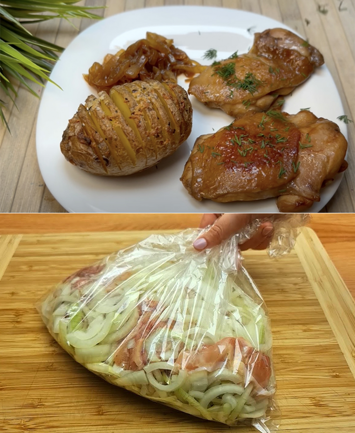 Нашли уловку для готовки идеально сочной курицы. Кладем на полчаса в пакет с луком и маринуем как шашлык