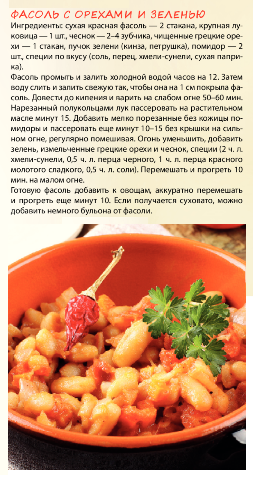 Фасоль с орехами и зеленью