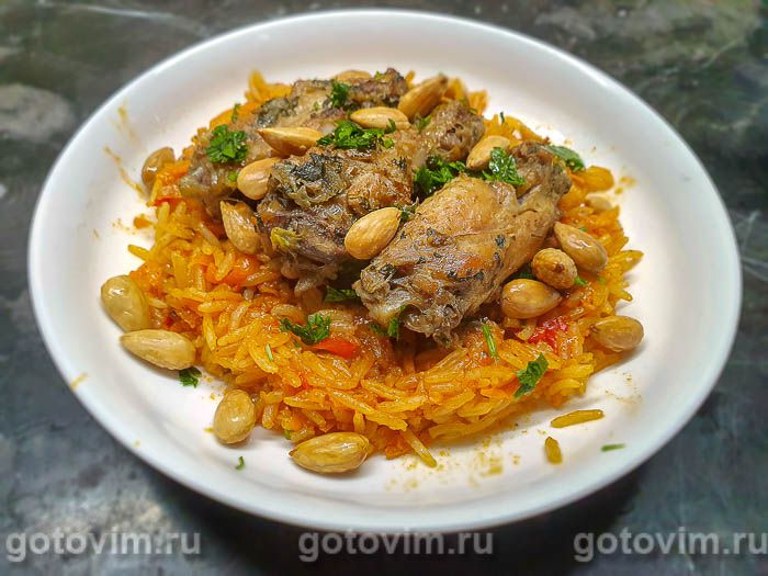 Рис с курицей, рисом и жареным миндалем. Рецепт с фото Если вам нравится ближневосточная кухня, то этот рецепт курицы с рисом и орехами придется вам по вкусу. Готовится все достаточно быстро и из простых продуктов, которые можно найти на полках в любом продуктовом магазине. В данном рецепте предпочтение отдано рису басмати. Он быстро и просто варится, получается вкусным и ароматным. Но вы можете выбрать любой другой сорт риса, который остается рассыпчатым при готовке. В ре... Подробнее