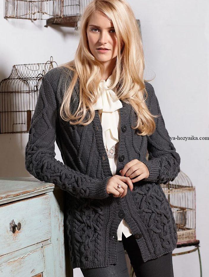 Кардиган с аранами схема и описание. Элегантный женский жакет спицами.