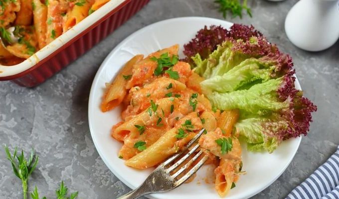 Паста пенне с курицей в духовке, пошаговый рецепт с фото
