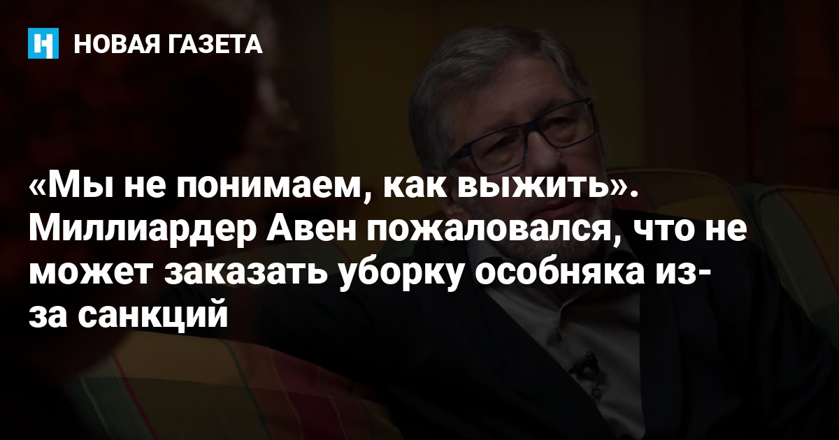 «Мы не понимаем, как выжить». Миллиардер Авен пожаловался, что не может заказать уборку особняка из-за санкций Российский миллиардер, экс-глава совета директоров Альфа-банка, Петр Авен заявил, что не знает, как выжить после внесения в санкционный список Великобритании и Евросоюза. Об этом он рассказал в интервью изданию Financial Times.