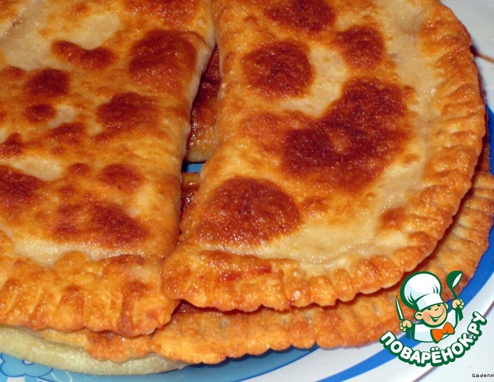 - Я делала на ряженке, но это не принципиально, можно взять любой кисломолочный продукт: кефир, простокваша, йогурт… В 0,5 литра ряженки всыпать манку и овсянку, перемешать и убрать на ночь в холодильник или оставить при комнатной температуре на 2-3 часа минимум, чтобы манка и овсянка разбухли. 1 яйцо взбалтываем с солью и сахаром, а тем временем кипятим чайник. В яйцо добавить 2 ст. л. муки, перемешать венчиком до однородности и, не прекращая взбивать, влить 100 мл кипятка, затем сразу всыпать еще 3 ст. л. муки и перемешать - тесто получается почти как на оладьи. Затем смешиваем заварное тесто и замоченные крупы с ряженкой, все перемешать и добавить муку, чтобы получилось мягкое тесто, которое все равно будет немного липнуть к рукам, поэтому много муки не надо, при раскатке просто подсыпать муки. Тесто накрыть пленкой и оставить на час отдыхать. Затем из теста сделать шарики, руки обвалять в муке или смазать растительным маслом, т. к. тесто липучее, но раскатывается очень замечательно, без усилий, но не забывать подпылять стол мукой. Сулугуни натереть на крупной терке. Вобще, сыр сулугуни у нас бывает разный, к сожалению, настоящего я, видимо, не пробовала, потому как от разных производителей он разный - то соленый, то пресный, то вообще есть невозможно))) я очень люблю моцареллу в выпечке такого рода, вот это для меня идеальный сыр, но сулугуни тоже очень вкусный, они чем-то похоже. А вообще, любой твердый сыр подойдет. Шарики раскатать в лепешки толщиной примерно 2 мм. На половинку лепешки выложить начинку, Накрыть второй половиной, защипать края. Формой сделала как обычные чебуреки, т. к. муж хотел именно их, но фарш остался лежать в магазине, поэтому форма осталась, начинка поменялась ))) но для меня такой исход был более вкусный, я без сыра не могу, а вот к мясу равнодушна )) Жарить тоже как обычно, на сковороде с хорошо разогретым маслом с двух сторон. Замесила я, конечно, как на Маланину свадьбу, теста много, даже очень, для нас троих позавтракать его хватило на 3 дня. Вот на второй уже день я делала с мясом, чем несказанно порадовала любимого, который уминал их с треском, да еще пытался выпросить добавку, в итоге тесто все равно сталось.