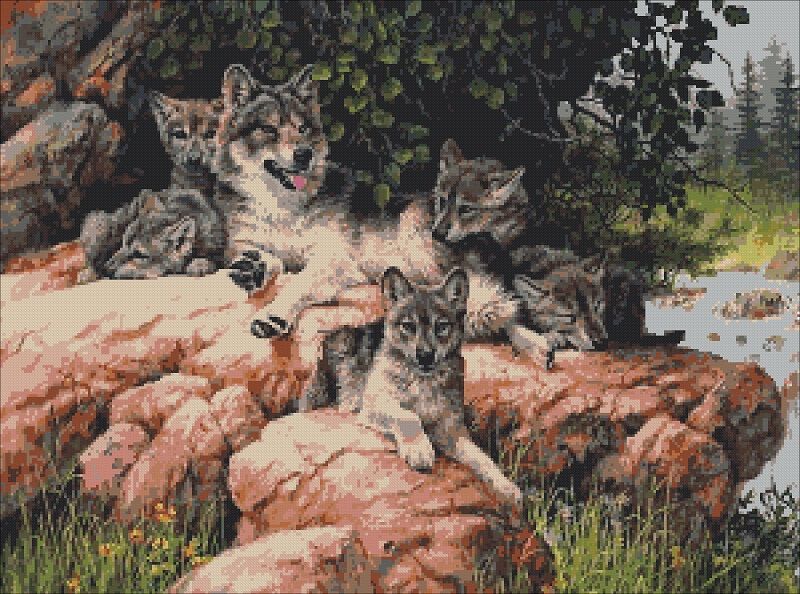 Схема вышивки крестом: Волчица с волчатами – купить на Ярмарке Мастеров – QKYQMRU | Схемы для вышивки, Рошаль Схема вышивки крестом: Волчица с волчатами в интернет-магазине на Ярмарке Мастеров. Авторская схема для вышивки крестом: Волчица с волчатами Четкая, хорошо читаемая цветная схема с крупными значками. Качественная ручная проработка схемы. Отсутствие случайных одиночных крестиков.