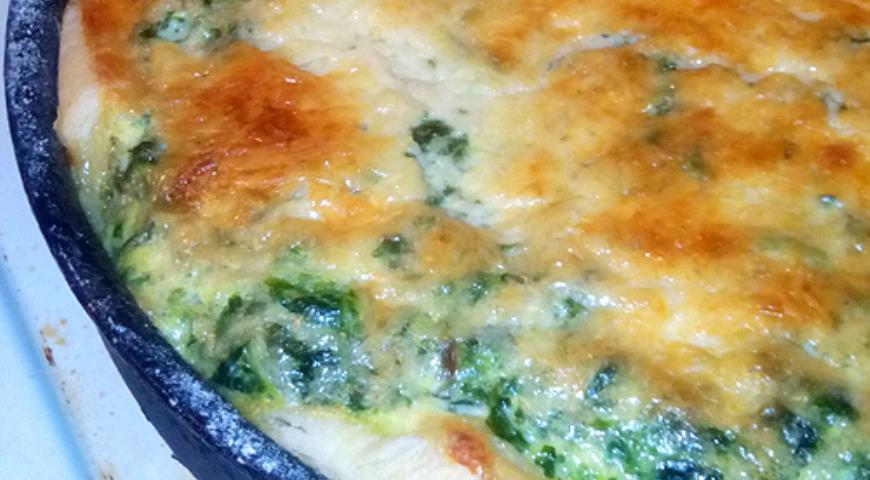 - Выливаем на основу начинку. Сверху посыпаем тертым сыром и ставим в духовку 175 С на 40-50 мин. Идем отдыхать. Приятного аппетита!