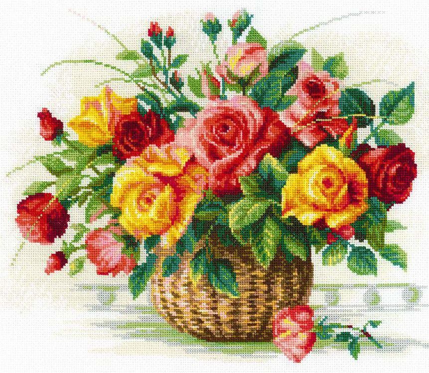 Набор для вышивки крестом Риолис: Корзина с розами – купить онлайн на Ярмарке Мастеров – QLVC2RU | Аксессуары для вышивки, Рошаль