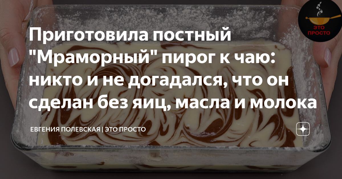 Приготовила постный "Мраморный" пирог к чаю: никто и не догадался, что он сделан без яиц, масла и молока Сегодня приготовим постный пирог – без яиц, масла и молока. Он получается нежный, влажный, пористый и воздушный. СПОСОБ ПРИГОТОВЛЕНИЯ: В миску высыпаем 120 г сахара, 8 г ванильного сахара, добавляем щепотку соли, выливаем 200 мл тёплой воды и 80 г мёда. Перемешиваем венчиком, стараемся, чтобы сахар растворился. Теперь добавляем 90 мл растительного масла без запаха, сно...