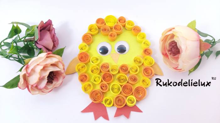 Квиллинг цыпленок из цветной бумаги и картона — мастер-класс с фото для детей