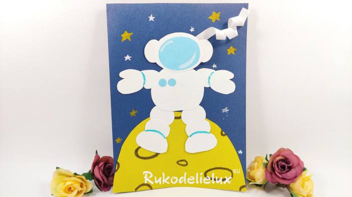 Аппликация Космонавт из бумаги к 12 апреля — поделка для детей с пошаговыми фото
