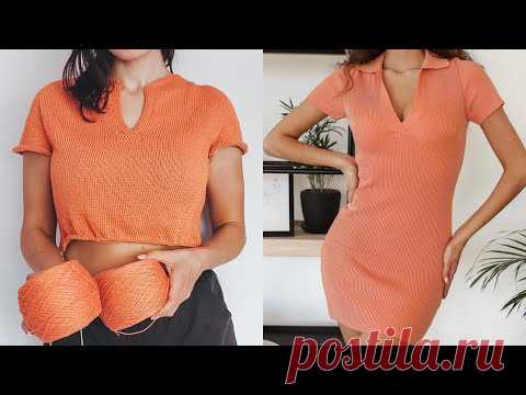 платье с воротником поло спицами. Реглан-погон сверху с ростком..