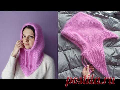 МК Капор спицами из пуха норки с большим треугольным снудом подробный МК