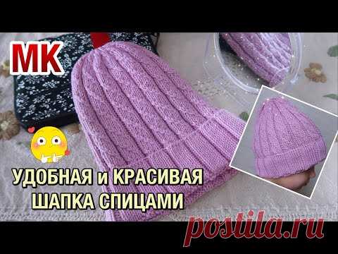 МК ШАПКА СПИЦАМИ с ОТВОРОТОМ // КАК ВЯЗАТЬ БИНИ // УЗОР СПИЦАМИ ОБВИТАЯ РЕЗИНКА