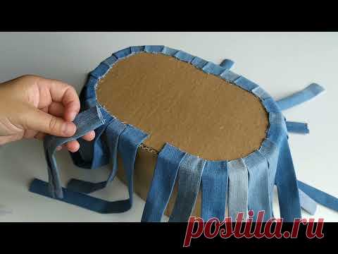 Разрезала СТАРЫЕ ДЖИНСЫ и сделала ШИКАРНУЮ корзину для хранения и дома без ШИТЬЯ.