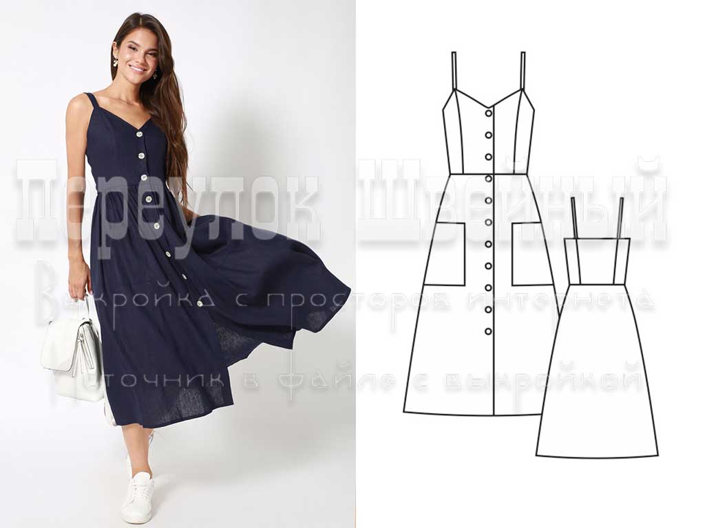 Выкройка сарафана на пуговицах и бретелях - Переулок швейный