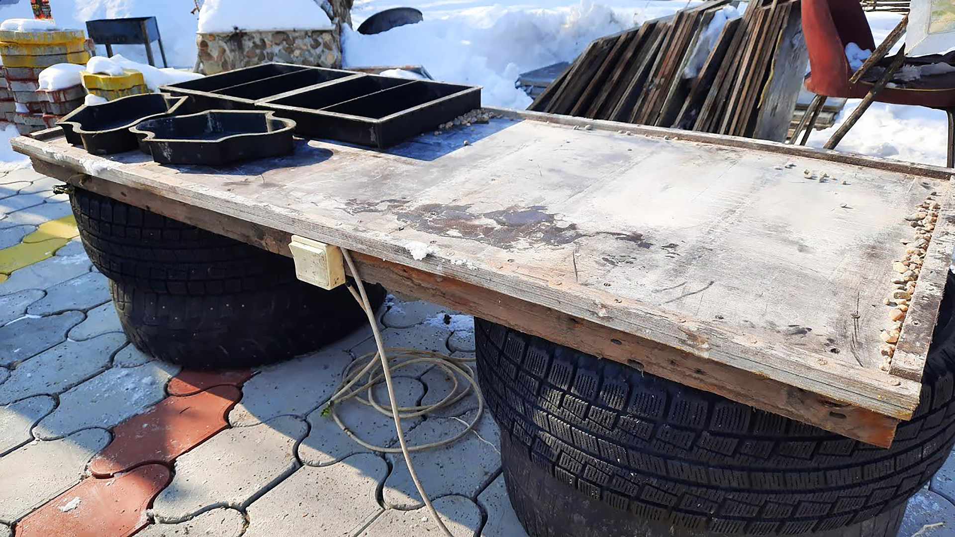 Наибюджетнейший вибростол своими руками из двери, покрышек и движка стиралки При производстве тротуарной плитки или других бетонных изделий очень важным является хорошее уплотнение раствора. Оно невозможно без использования вибростола. Такое нужное оборудование на самом деле очень простое, поэтому его легко сделать своими руками с минимальными вложениями. Материалы: Старые