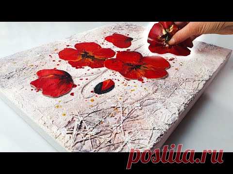 Unique TEXTURED Art + Acrylic Pouring!! - STUNNING Poppy Painting | AB Creative Mixed Media Tutorial