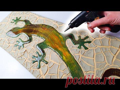 Cracked TEXTURE Lizard Art! Acrylic Pour + Resin + Mixed Media | AB Creative Tutorial