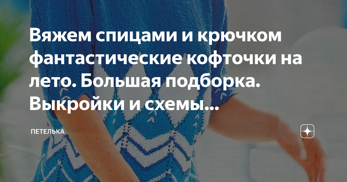Вяжем спицами и крючком фантастические кофточки на лето. Большая подборка. Выкройки и схемы прилагаются Всем, привет. Из легкой хлопчатобумажной пряжи можно спроектировать и связать спицами пли крючком самые разнообразные изделия, а украсив очень красивыми ажурными или жаккардовыми узорами можно создать по истине не повторимые образы. Сегодняшняя подборка посвящена летним моделям. Комбинируйте, творите и вяжите с удовольствием! 1. Сине - белый свитерок с ромбами. Размер. 4...