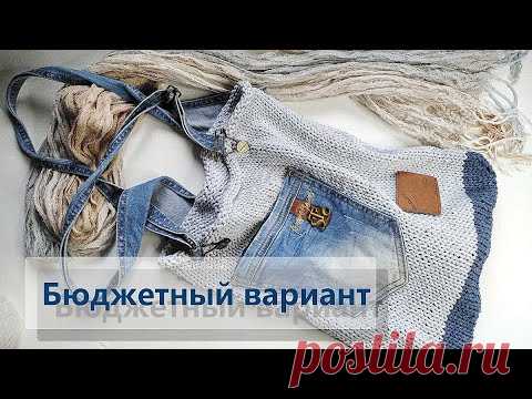Вязание + ткань. Сумка спицами из шнура.