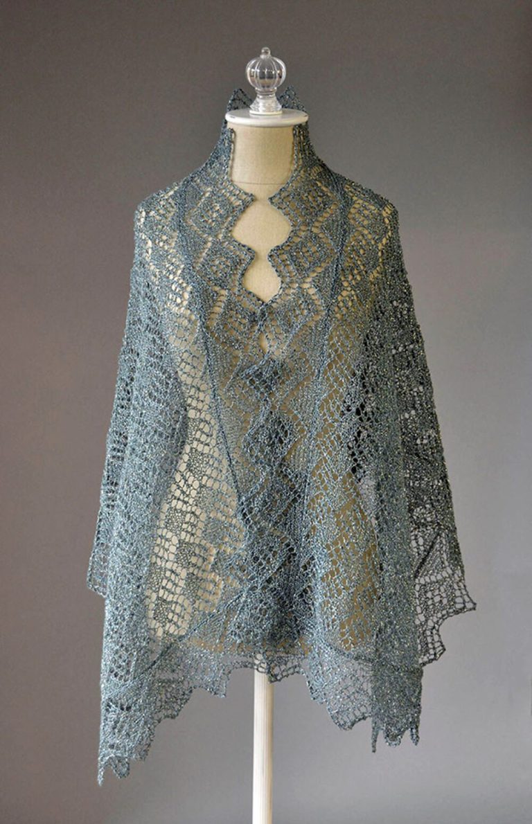 Палантин с рисунком «ажурные ромбы» и зубчатой каймой