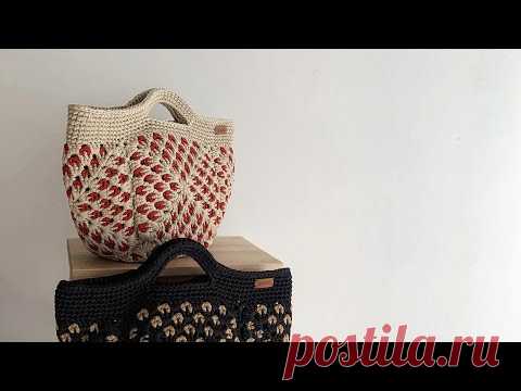 🔥🔥🌟 Сумка из 5 квадратов крючком любого размера. Двухцветное вязание. SHODDI