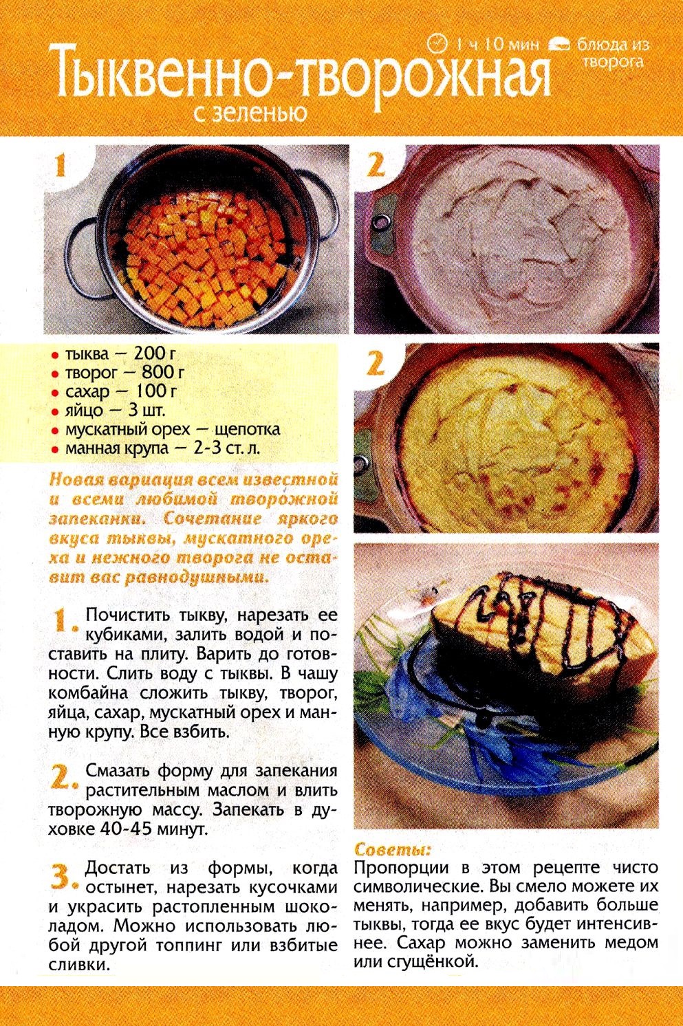 Тыквенно-творожная запеканка с зеленью