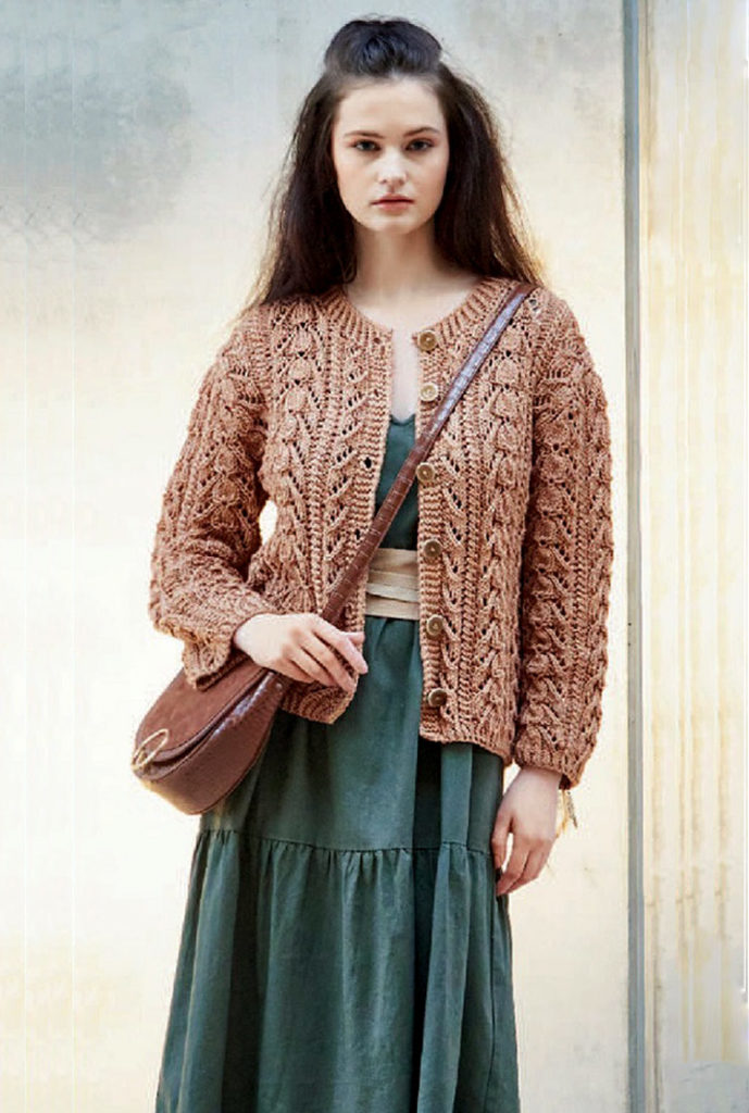 Коричневый жакет с ажурными полосами. Описание вязания - delava-ya.ru