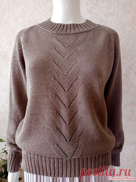 Джемпер Весенний джемпер в интересном цвете какао - результат моей работы. Реглан, ажурная дорожка по переду, пластичное полотно итальянского мериноса. Что ещё могу добавить?