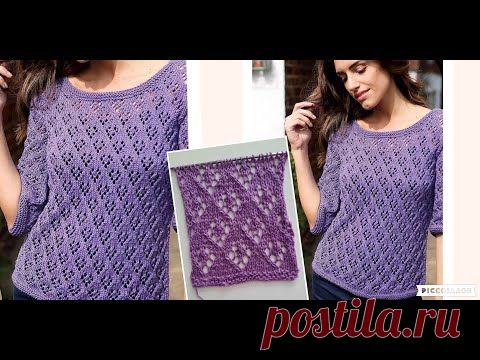 Очень простая кофточка с ажурными ромбами.// Легкий узор + схема.//