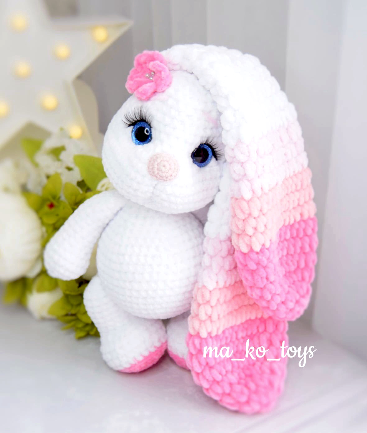 PDF Зайка Звёздочка крючком. FREE crochet pattern; Аmigurumi animal patterns. Амигуруми схемы и описания на русском. Вязаные игрушки и поделки своими руками #amimore - плюшевая зайка, большой заяц из плюшевой пряжи, зайчик, кролик, зайчонок, крольчонок.