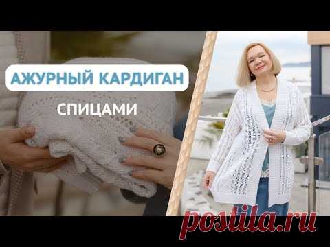 Ажурный узор спицами / Ажурный кардиган спицами / Ажурный жилет спицами