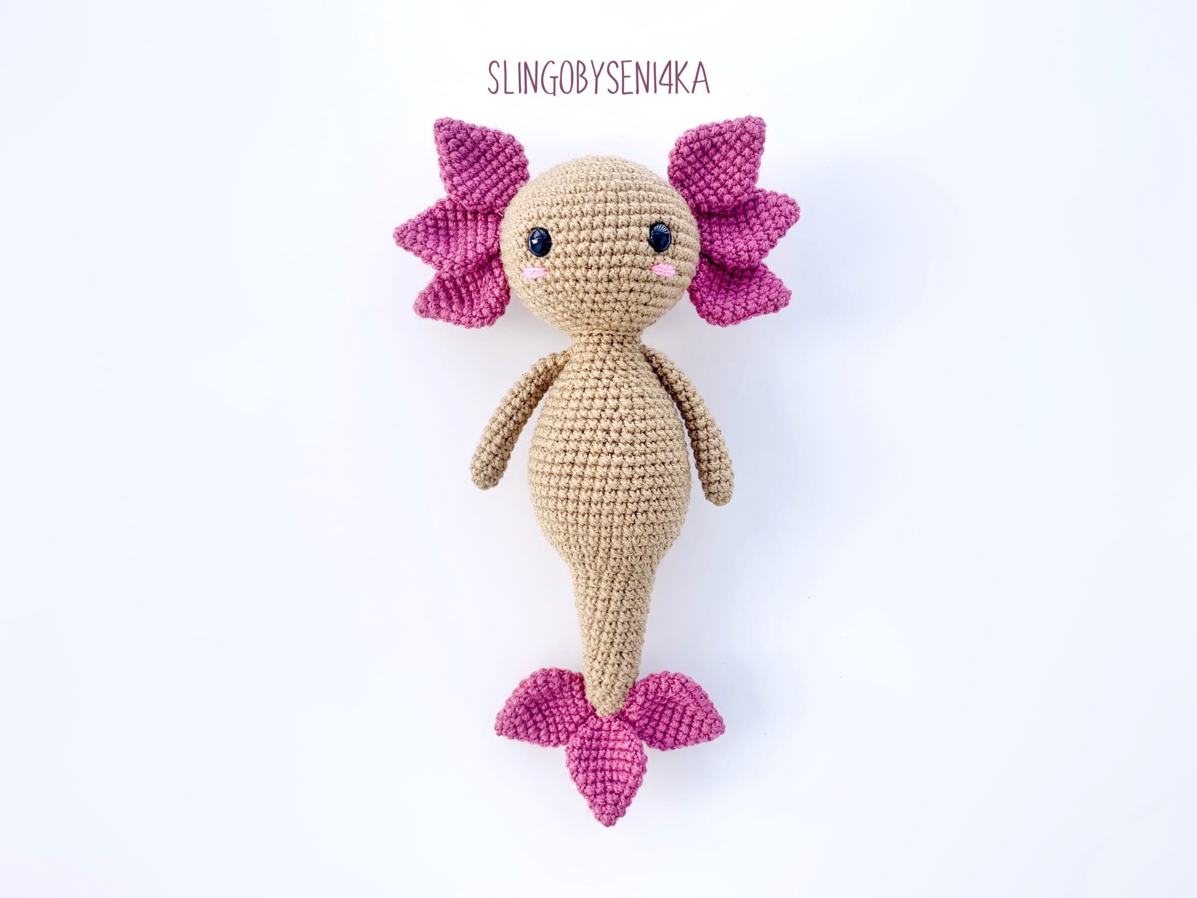 PDF Аксолотль Павел крючком. FREE crochet pattern; Аmigurumi toy patterns. Амигуруми схемы и описания на русском. Вязаные игрушки и поделки своими руками #amimore - аксолотль из обычной пряжи, амфибия.