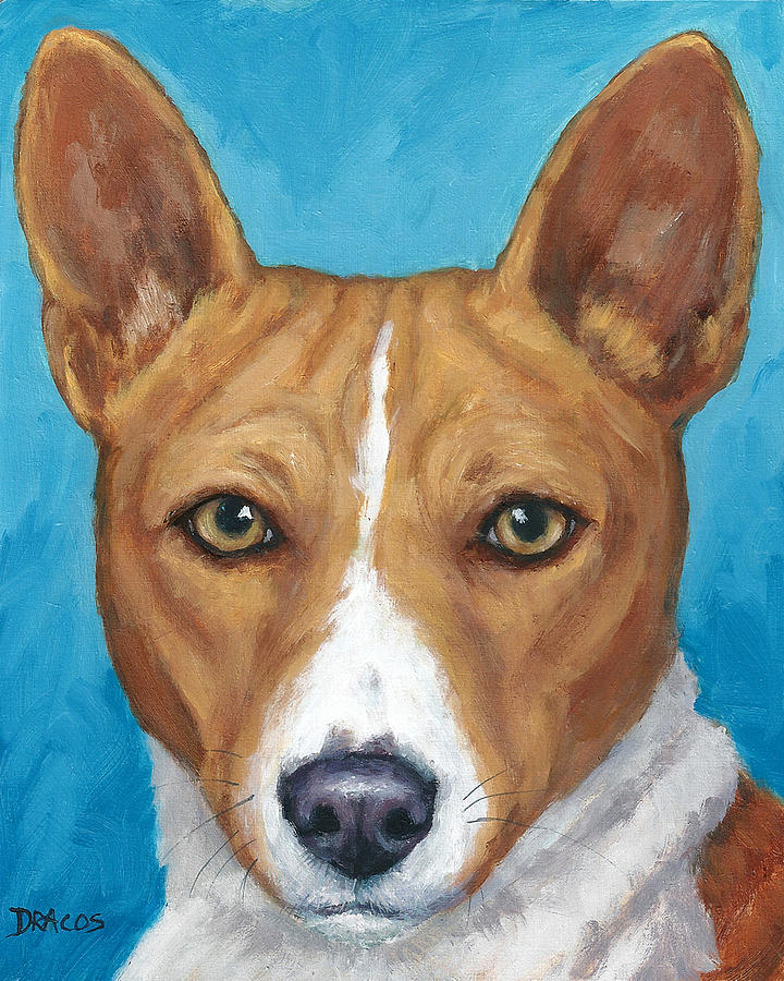 Basenji Portrait on Blue by Dottie Dracos Basenji Portrait on Blue Painting by Dottie Dracos