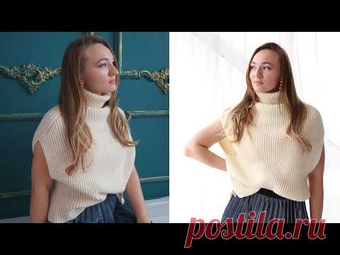 Трендовый жилет спицами резинкой 1x1 подробное описание
