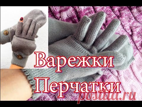 Перчатки- варежки. Мастер-класс. Очень теплые двойные варежки-перчатки. Вязание.