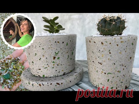Сделай сам - Горшок для растений из цемента и битого стекла: гранилитовый бетон