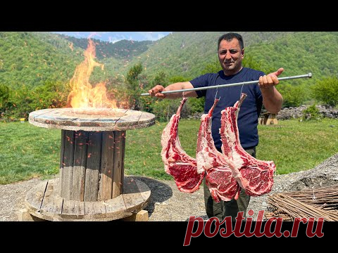 Стейк Рибай Приготовленный в Самодельном Тандыре из старого кабельного барабана