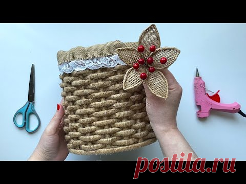 DIY Wicker basket made from recycled newspapers and jute - YouTube